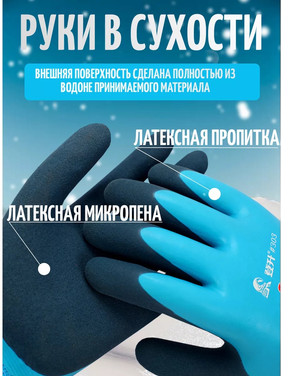 Перчатки не промокают даже если их полностью погрузить в воду в морозную погоду.